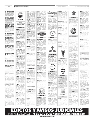 22 B! CLASIFICADOS CIUDAD DE MÉXICO MARTES 6 DE AGOSTO DE 2024