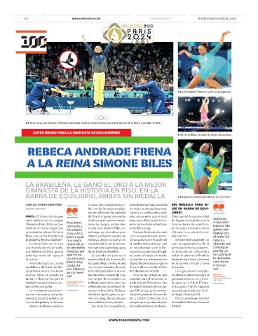 por delante de Biles, que se Juegos), así de un triunfo inolvidable. noamericana de esta discipli- tió el lujo de ser vulnerable y por fin un