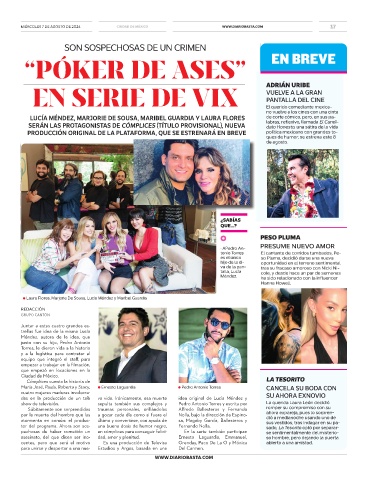 María José, Paula, Roberta y Stacy, ● Ernesto Laguardia ● Pedro Antonio Torres CANCELA SU BODA CON
