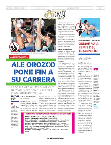 • Ale Oroz- sin medalla. Ambas clavadis- edición. Gaby culminó su partici- ya es una Ale que dimensiona OSMAR