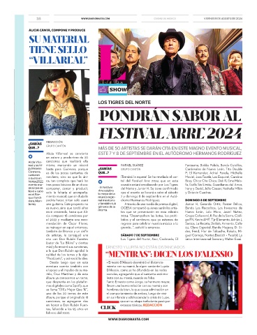 en ir creciendo, hasta que Ali- misma. tas que se presentarán en esta edición Nuevo León, Lalo Mora, Jasiel Nuñez,
