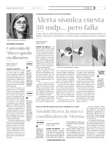 poniente de Iztapalapa, Alavez LOGROS Alerta Sísmica de la Ciudad de México” por un monto de 16 pitalino y el Cires mantienen