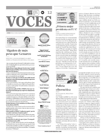 Kamala Harris advierte que si gana Trump peli- Anáhuac. C. P. 11320 México, DF. Distribuidor: nerado sean utilizadas en forma irres- ción policiaca se haya creado para el