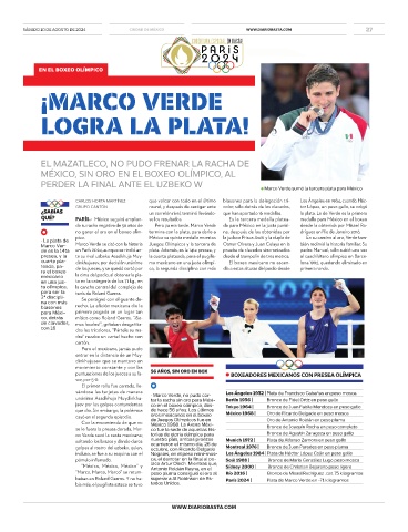 do su racha negativa de 56 años de Pero ya era tarde. Marco Verde da para México en la justa parisi- desde la obtenida por Misael Ro-