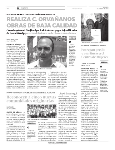 fue de 10.3 millones de pesos. Superior capitalina en su revi- a las observaciones detectadas misos al encabezar la dona- reafirman-