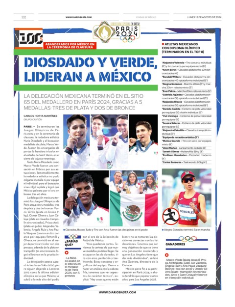 22 WWW.DIARIOBASTA.COM CIUDAD DE MÉXICO LUNES 12 DE AGOSTO DE 2024