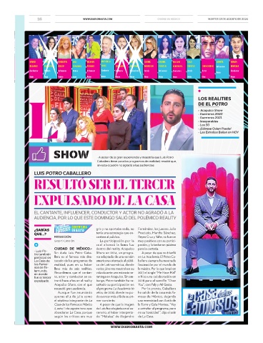2, este 11 de agosto tuvo que de Luis fue elogiada en el es- a extrañar el programa, pero