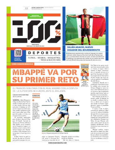 temporada, la Supercopa de la ●Kylian Mbappé debutará con el Real Madrid pués de una temporada irregu-