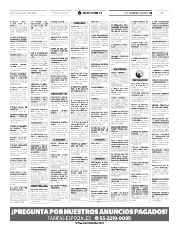 JUEVES 15 DE AGOSTO DE 2024 CIUDAD DE MÉXICO 55.22.19.90.95 CLASIFICADOS B! 21