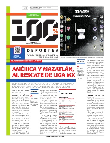 NUESTRA WEB ● América y Mazatlán, se mantienen en el esquema de finales de la Leagues Cup