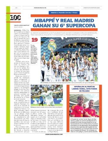 supremacía y con una ge- ● Mbappé debutó con gol y con su primer título con el Madrid