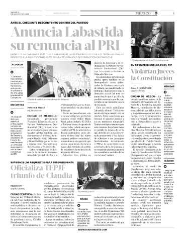 sidencial Francisco Labastida dejará al Sauri, quien declaró: “El INE y en ese momento renunciaré. ción al obstaculizar el acceso a cluyendo