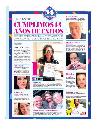 14 WWW.DIARIOBASTA.COM CIUDAD DE MÉXICO VIERNES 16 DE AGOSTO DE 2024