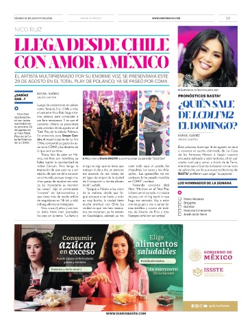 SÁBADO 17 DE AGOSTO DE 2024 CIUDAD DE MÉXICO WWW.DIARIOBASTA.COM 19