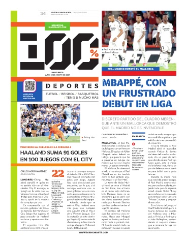 su partido 100 con el Man- ver Erling encuentro, por lo que, si el qi frenó en seco al Madrid ma, pero no fue rutilante, de-