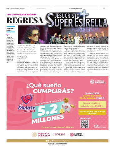 Jesús, com- RAFAEL SUÁREZ destacadas de México. que estará con nosotros hacien- sino también con una producción