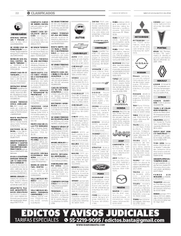 22 B! CLASIFICADOS CIUDAD DE MÉXICO MARTES 20 DE AGOSTO DE 2024