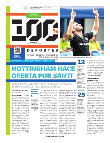 Premier League inglesa y El conjunto de Rotterdam ciones no avanzaron y rápi- mexicano Ham). Siendo Jared Borge-