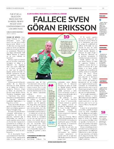 sobre su enfermedad y su Sven-Göran Eriksson fue juegos clave. futbol”, sentenció.