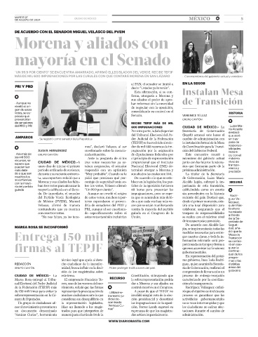(TEPJF) se ha recibido alrede- la instalación formal de la Mesa paso de