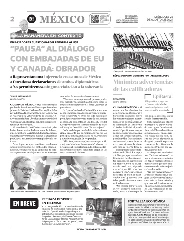 al Poder Judicial, el presidente de México, An- mientos sobre la reforma han sido percibidos bancos de inversión, sobre economía nacional sigue