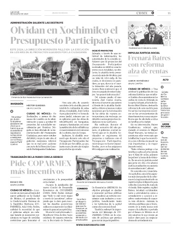 varias obras Ciudadano, pues entre octubre Inclusive, la alcaldía reco- chimilco se registraron 83 mentaron ocho veces más que