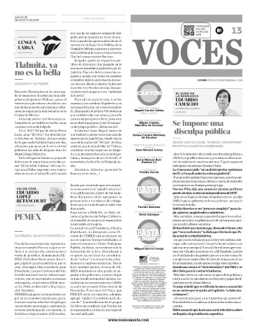 ción Petrolera. Hacienda, Francisco Gil Díaz, que Anáhuac. C. P. 11320 México, DF. Distribuidor: en su contra por el asalto al Capitolio, “y debe des-