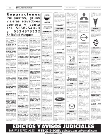22 B! CLASIFICADOS CIUDAD DE MÉXICO JUEVES 29 DE AGOSTO DE 2024