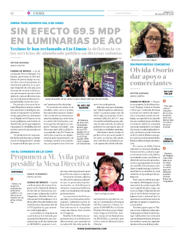 lonia Tlapechico, donde vecinos De acuerdo con datos de la QUEJAS Además, solo para el progra- ta de Tlalpan, Gabriela Osorio, • Tras ope-