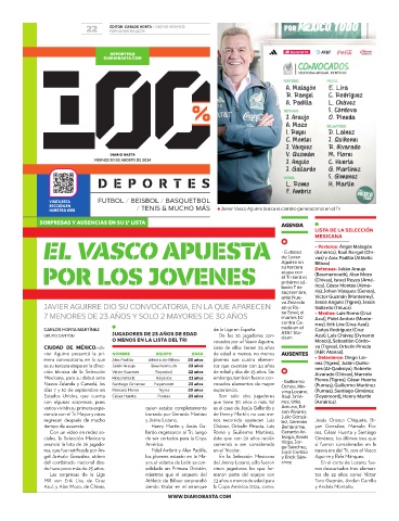 JAVIER AGUIRRE DIO SU CONVOCATORIA, EN LA QUE APARECEN en el Ro- Gallardo (Toluca).