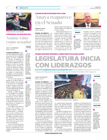la elección de la Mesa Directiva mayor re- nández, en su calidad de inte- septiembre
