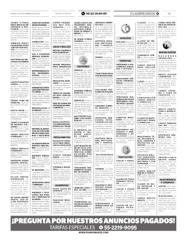 LUNES 2 DE SEPTIEMBRE DE 2024 CIUDAD DE MÉXICO 55.22.19.90.95 CLASIFICADOS B! 21