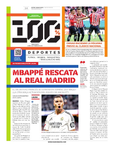Los goles de Mbappé ca- to 67 y remató con un penal mejoría en Vinicius, una me- que mitigan sus malas sen-