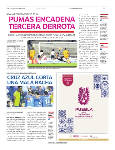 con la playera de Pumas, pero el •Pumas nada pudo hacer ante la remontada de Tigres caída en picada.