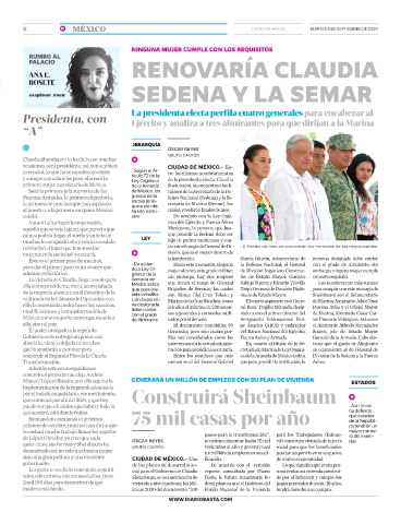 labrando camino, vienen sus 6 años, tiene Sheinbaum, es la construcción de Basta, la futura mandataria fe- da por el Infonavit y cumple sus