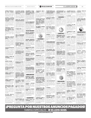 MIÉRCOLES 4 DE SEPTIEMBRE DE 2024 CIUDAD DE MÉXICO 55.22.19.90.95 CLASIFICADOS B! 21