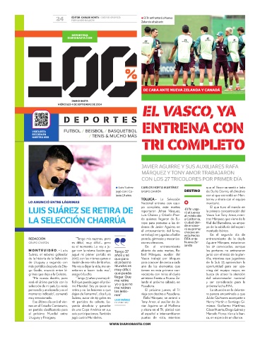 LUIS SUÁREZ SE RETIRA DE po completo, este martes •El Tri viaja- la primera concentración del