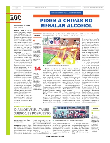 dente de las Chivas, Amaury Ver- LA ORGANIZACIÓN RED DE ACCIÓN SOBRE ALCOHOL QUIERE QUE SE