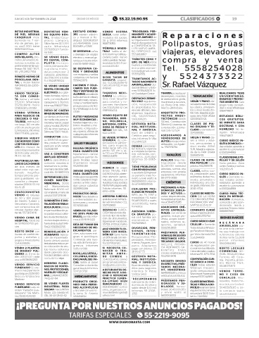 JUEVES 5 DE SEPTIEMBRE DE 2024 CIUDAD DE MÉXICO 55.22.19.90.95 CLASIFICADOS B! 19