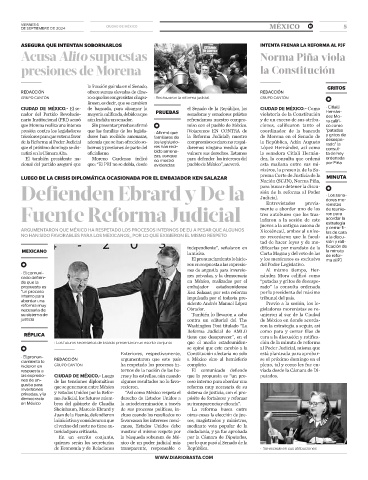 LUEGO DE LA CRISIS DIPLOMÁTICA OCASIONADA POR EL EMBAJADOR KEN SALAZAR Nación (SCJN), Norma Piña, MINUTA