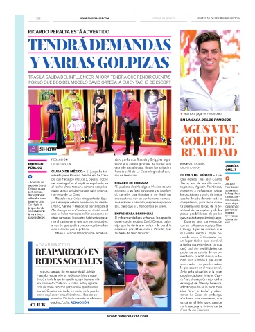 CIUDAD DE MÉXICO.– El juego ha ter- Peralta salió de La Casa e ingresó al estu- QUE...?