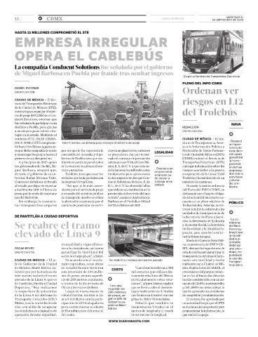 durante el gobierno de su an- También, tuvo que cesar los fundamento para apersonarse empresa pu- en operación de la Línea 12 del dos con la