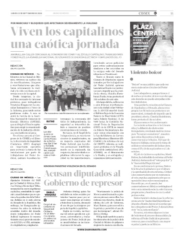 nidas Insurgentes y Paseo de nes en la ciudad. A las 7:00 ho- de Diputados y el Senado, ahora estos