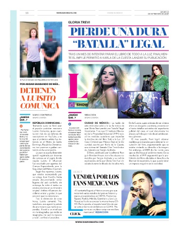 pado. viajaba Luisito. El influencer explotación, en la que Gloria Trevi fue vin- libertad de expresión, lo que puede tener