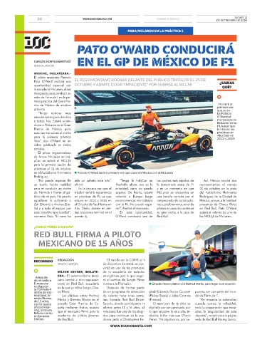 lla) y a todo el equipo por Abu Dhabi, donde en am- rar!”, finalizó el mexicano. pilotos en caso de continuar en Red Bull, Pato O’Ward