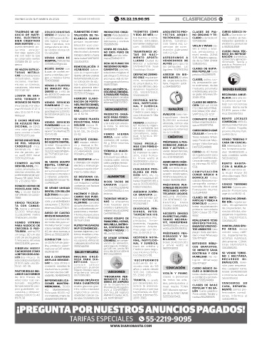 VIERNES 13 DE SEPTIEMBRE DE 2024 CIUDAD DE MÉXICO 55.22.19.90.95 CLASIFICADOS B! 21