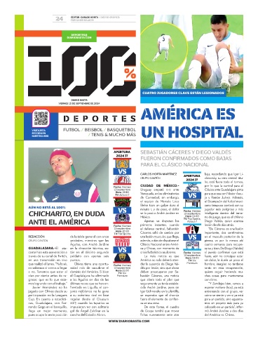 que realizó el lunes. “Ya lo sé, Chivas tiene una oportu- Fecha: Viernes der la ausencia de Diego Val- Premium hombro, imagino no tardarse