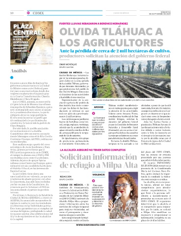 Sheinbaum y Clara Brugada. Representantes de la aso- • Denuncian el abandono de las autoridades y el daño a sus cosechas