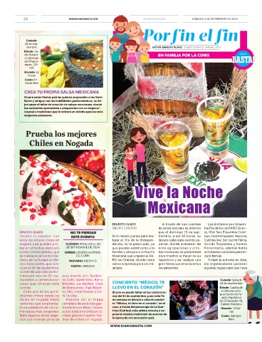 16 WWW.DIARIOBASTA.COM CIUDAD DE MÉXICO SÁBADO 14 DE SEPTIEMBRE DE 2024