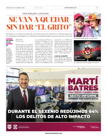 SÁBADO 14 DE SEPTIEMBRE DE 2024 CIUDAD DE MÉXICO WWW.DIARIOBASTA.COM 19